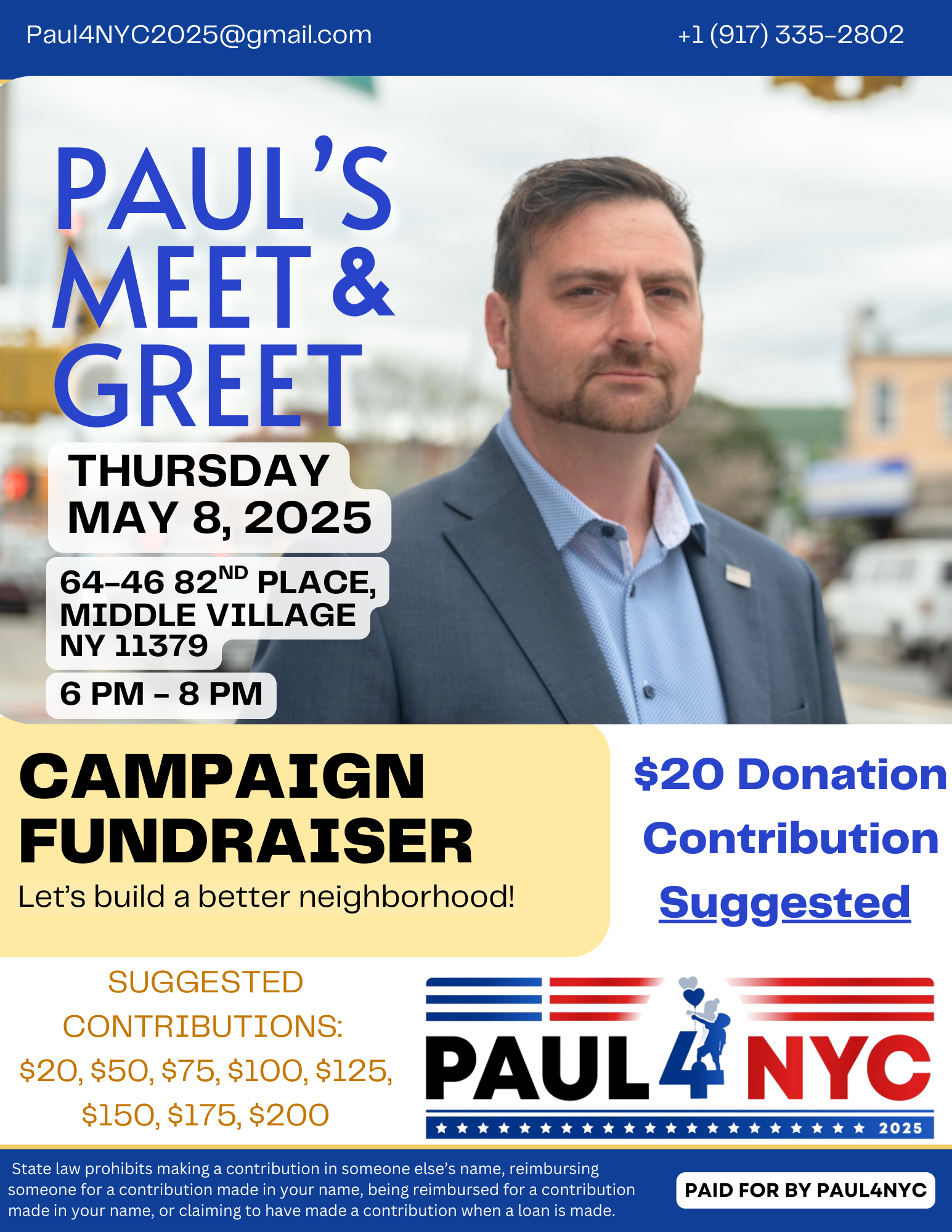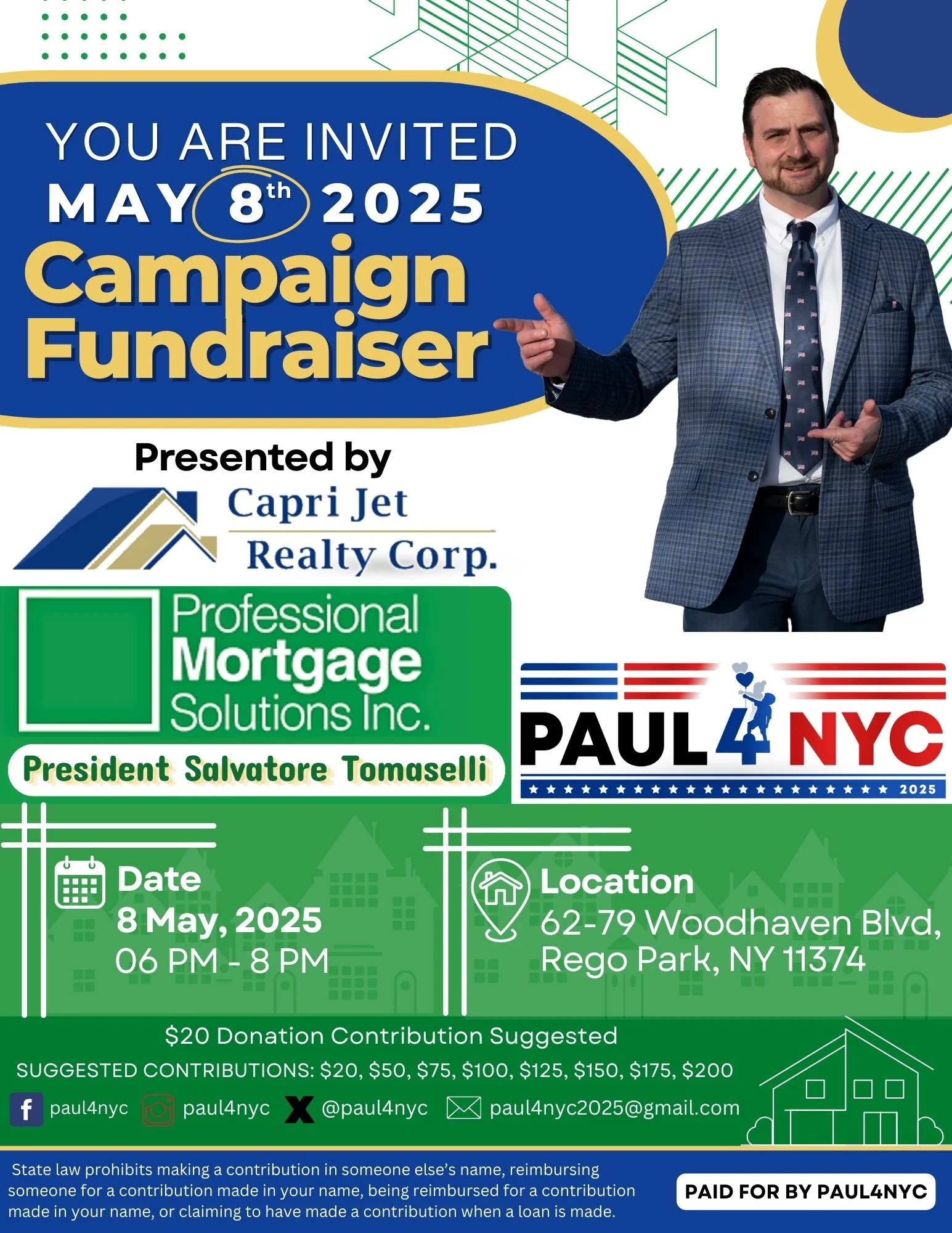 Multiple advertisements and event flyers for fundraisers for a New York City Council Campaign.